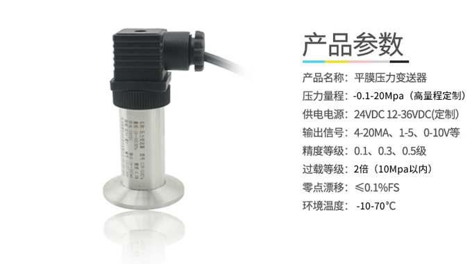 SIN-P350衛生平膜型壓力變送器,衛生平膜型液位變送器是測量端采用特殊堅固處理的齊平隔離膜片。結構緊湊、耐腐蝕,抗震動、抗微粒沖擊、寬范圍溫度補償。膜片采用316L不銹鋼材料,特別適用于醫療、食品行業有衛生要求的,粘稠流體壓力和液位測量,解決了結垢,堵塞,清潔衛生等問題。高精度的信號處理電路位于將傳感器輸出信號轉換為標準輸出信號,可直接與計算機、控制儀表、顯示儀表等相連。采用一體化全不銹鋼結構,經過多次不銹鋼焊接,實現了全固態設計,安裝方便。廣泛應用于食品、醫藥、衛生及釀酒工業等部門。